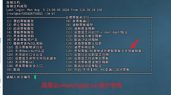 在此界面中选择16修复面板,等待更新修复成功后,再次访问宝塔面板